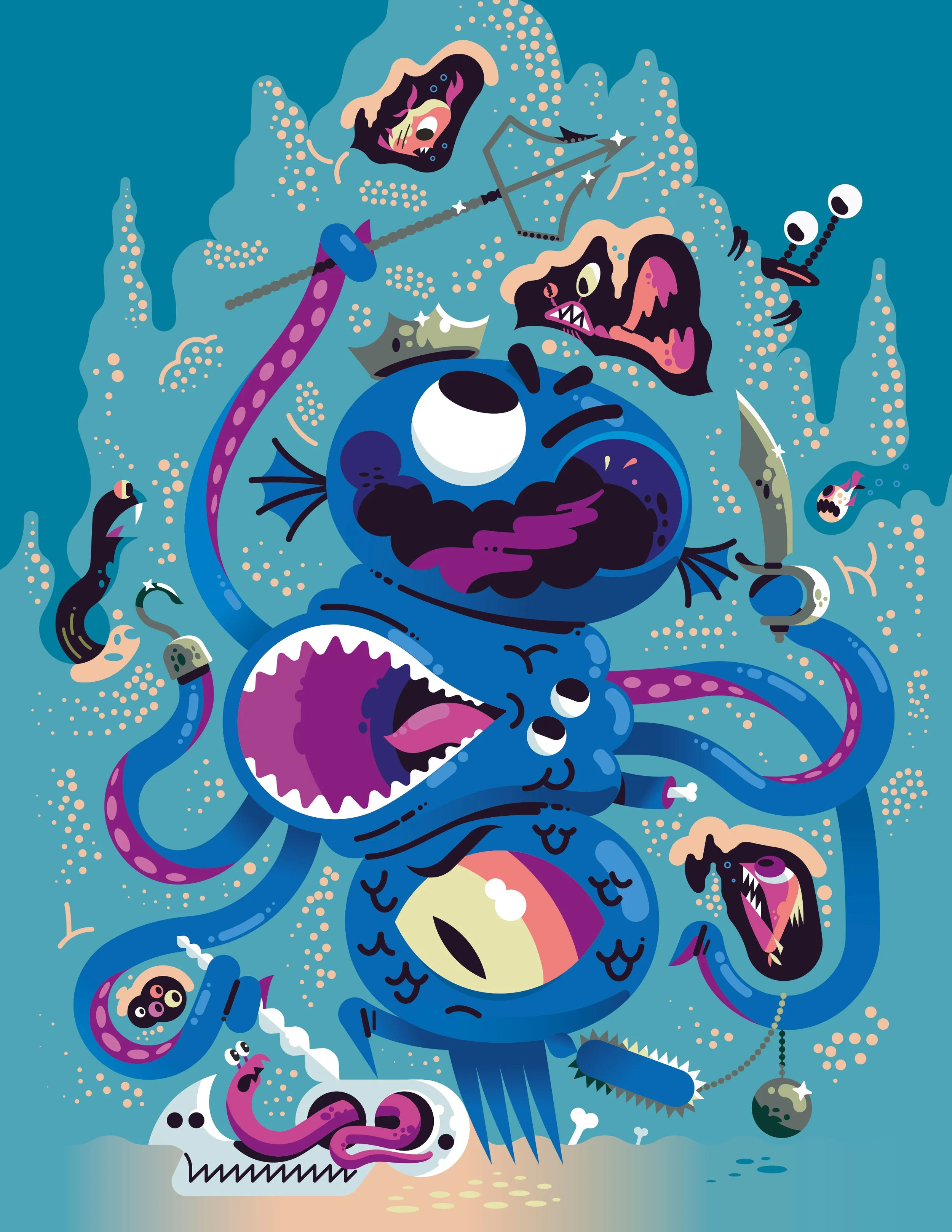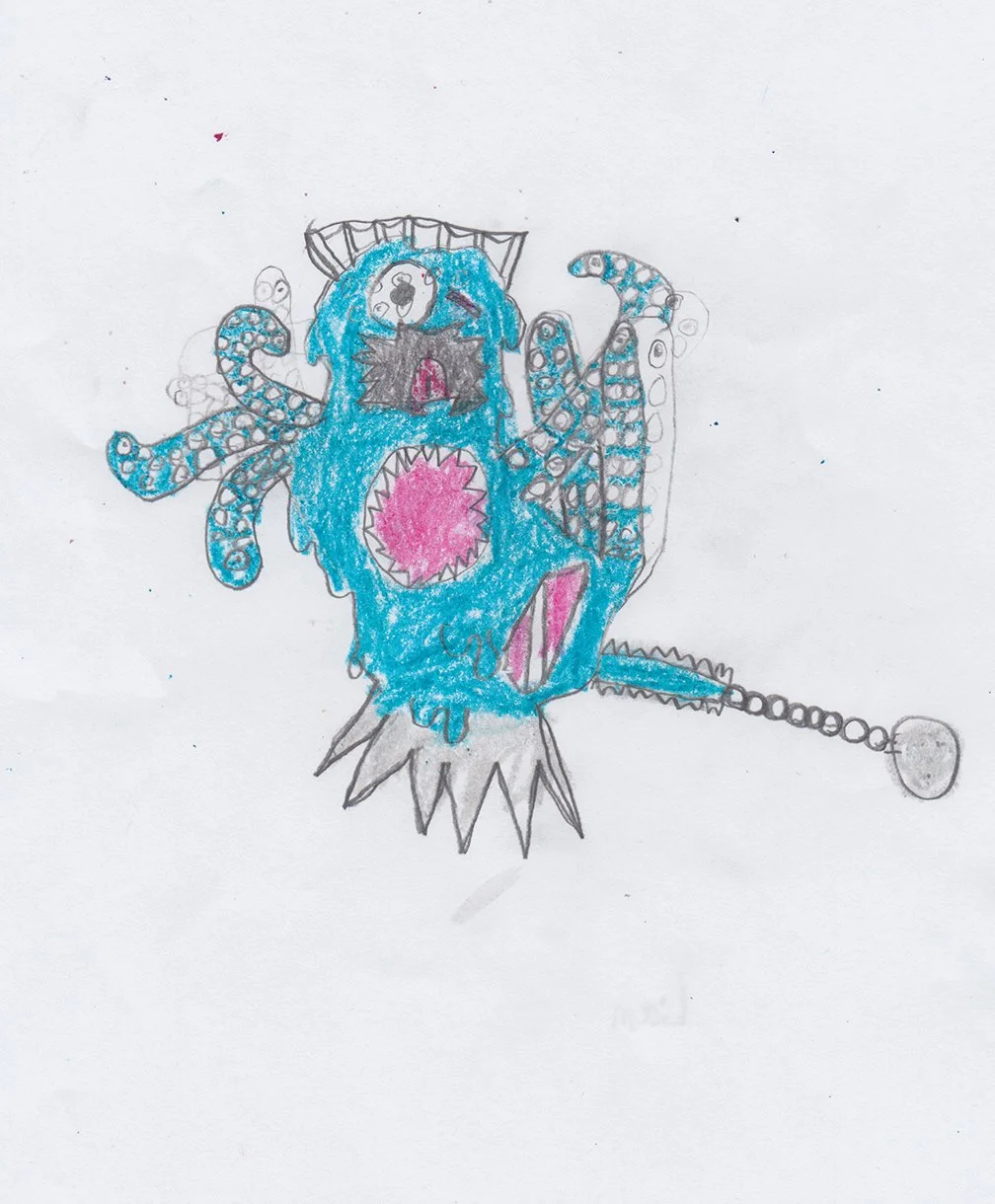 Kids draw monsters. Then artists from all over the world re-imagine those monsters in their own unique styles. This is my take on Liam aged 9’s incredibly creative monster.